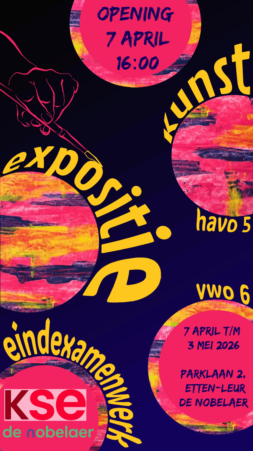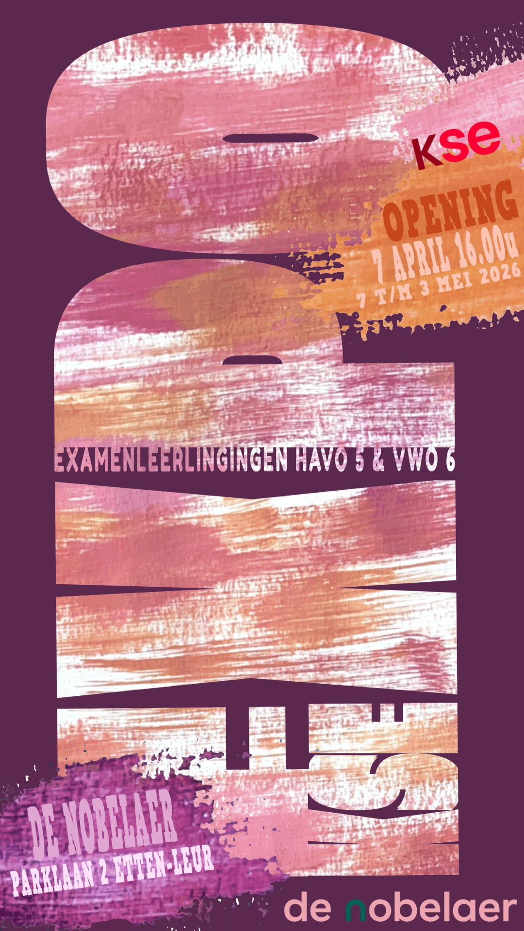Na het grote succes van de afgelopen twee jaar exposeren ook dit jaar de eindexamenleerlingen van het KSE bij De Nobelaer. De werken bieden een bijzonder inkijkje in de artistieke ontwikkeling die onze leerlingen tijdens hun schooltijd hebben doorgemaakt. Deze expositie vormt een mooie afsluiting van hun creatieve reis, waarin zij met trots laten zien wat ze hebben bereikt.